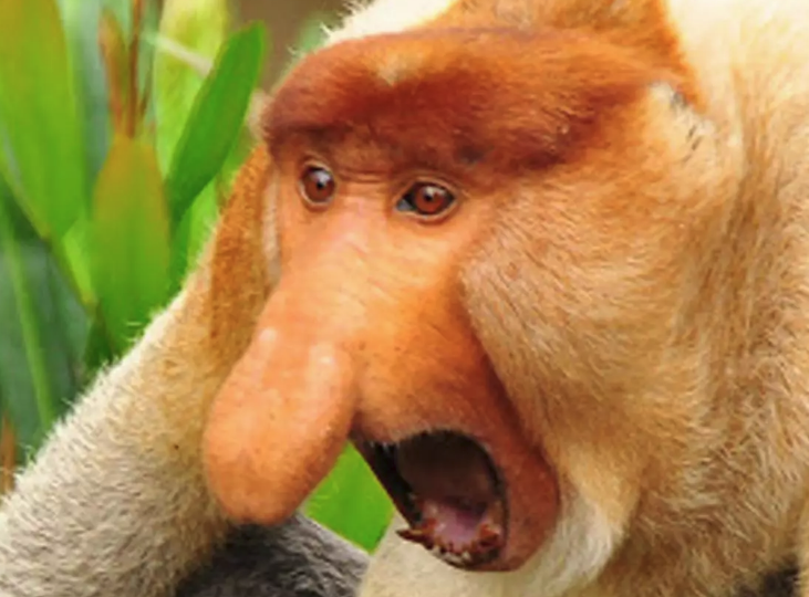 It may seem hard to believe, but male proboscis monkeys use their fleshy, pendulous noses to attract mates. Scientists think these outsize organs create an echo chamber that amplifies the monkey’s call, impressing females and intimidating rival males.