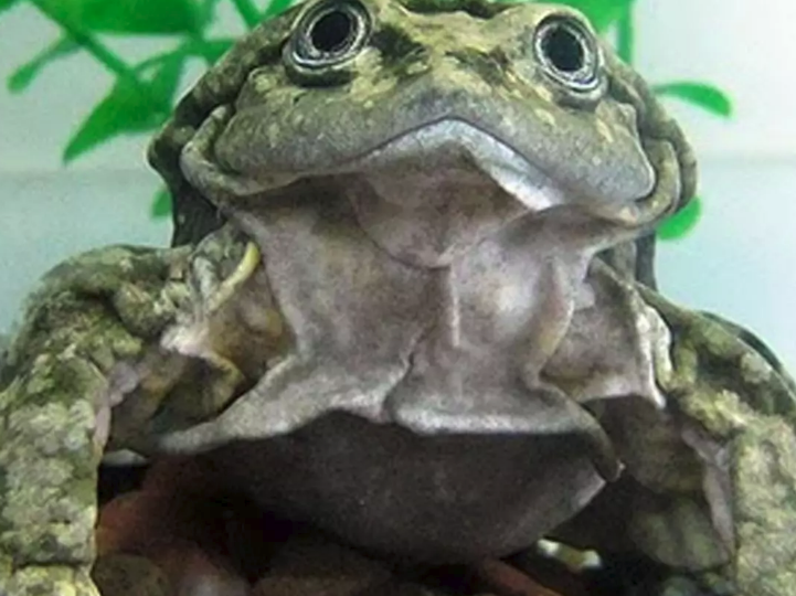 The Titicaca Water Frog, Telmatobius culeus, is the largest aquatic frog found in Lake Titicaca in Peru and Bolivia. Individuals have been known to weigh almost a kilogram, and are unmistakable with their folds of skin. Those excessive skin folds have lent the species their nickname, Titicaca Scrotum Frog. Unfortunately it is also considered to be an aphrodisiac when mixed with honey, the roots of a local plant, and several other products, and consumed as a “thick shake”.